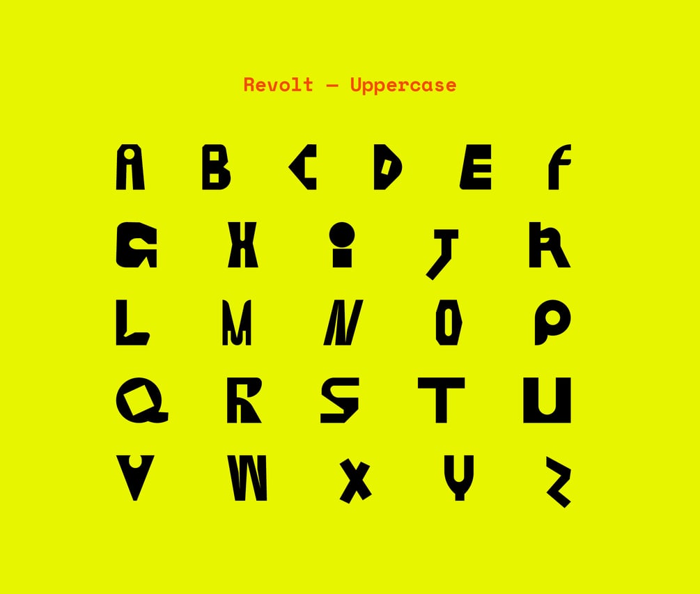 Revolt is intended for use on protest, march, and change-making material. Racists, fascists, and other purveyors of hate may not buy or use this font.