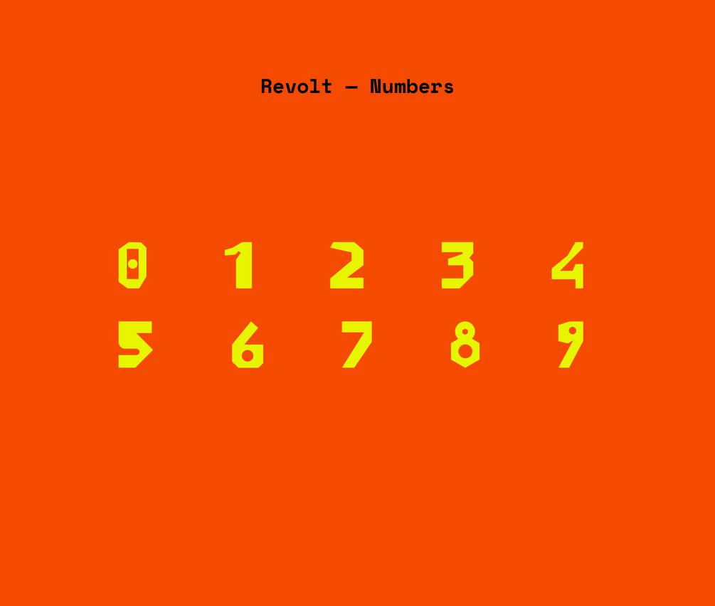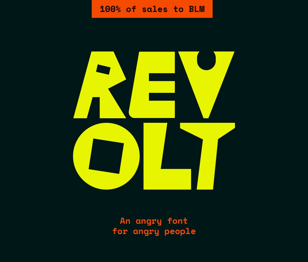 Revolt is intended for use on protest, march, and change-making material. Racists, fascists, and other purveyors of hate may not buy or use this font.